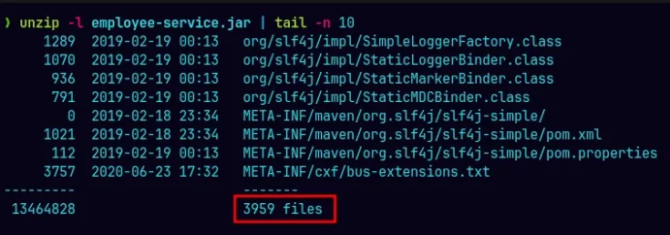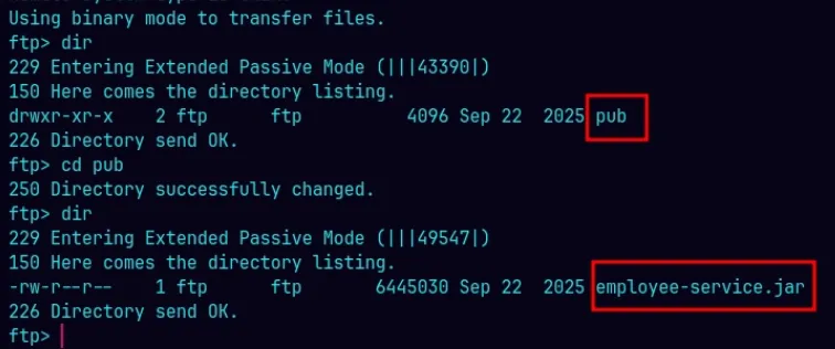 Encontramos un directorio pub y dentro un archivo .jar (employee-service.jar)