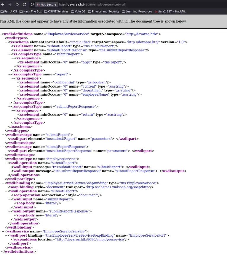 Lineas mas abajo vemos las misma operación con la ruta http://0.0.0.0:8080/employeeservice?wsdl